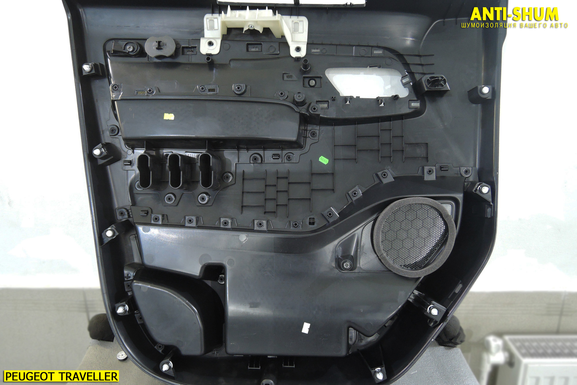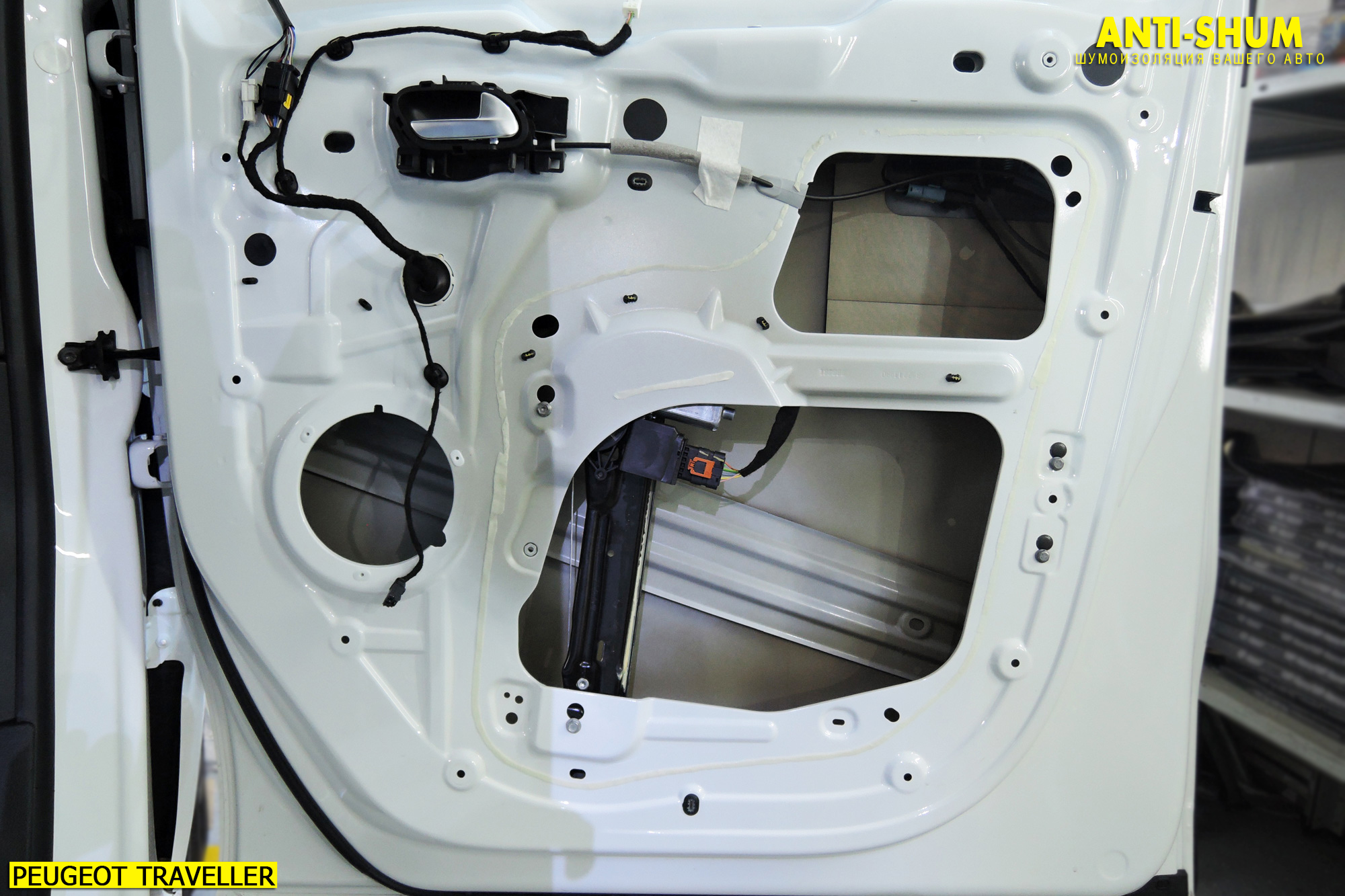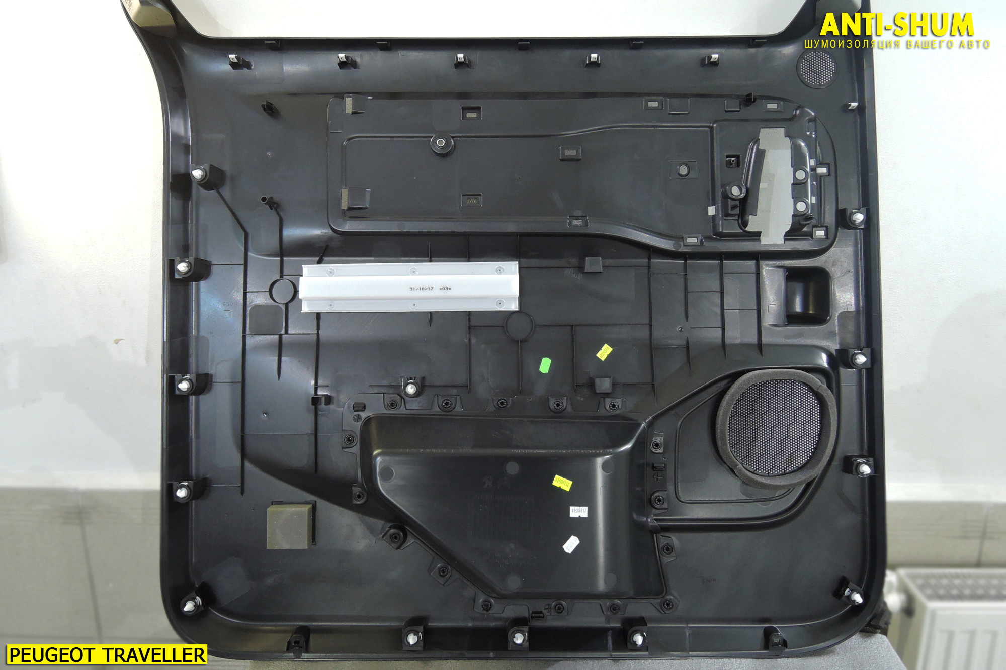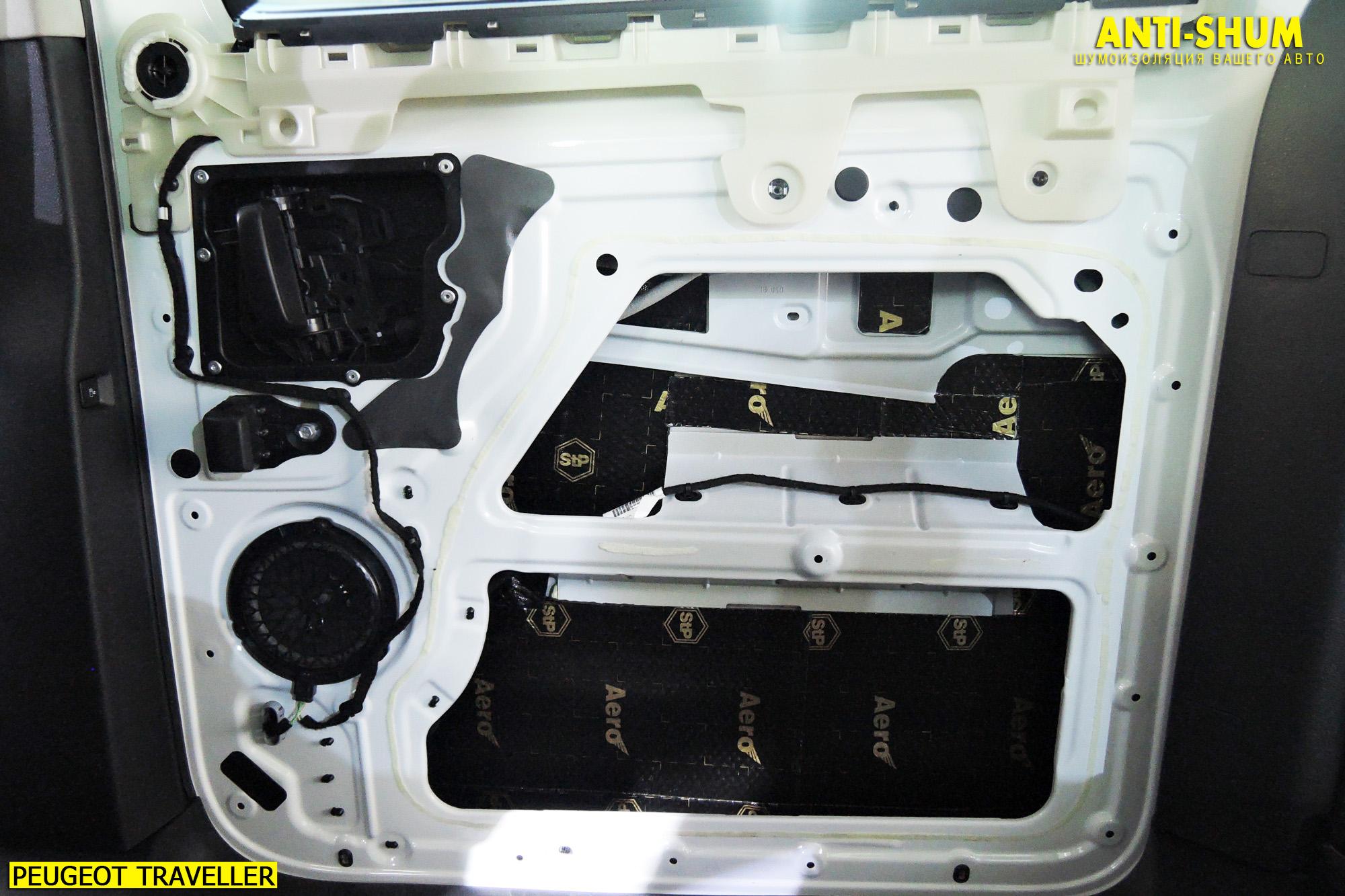 Новенький Peugeot Traveller приехал к нам на шумоизоляцию с жалобами на шумный двигатель, «пустые» и звонкие двери, невнятное звучание штатной акустики, высокий общий уровень шума в салоне и надоедливый стук в правой части передней панели. Так как автомобиль используется для частых дальних поездок, владелец машины выбрал максимальный вариант шумоизоляции «ПРЕМИУМ», а также заказал дополнительные услуги по шумоизоляции передней панели со снятием, а также шумоизоляции колесных арок и подкрылков.