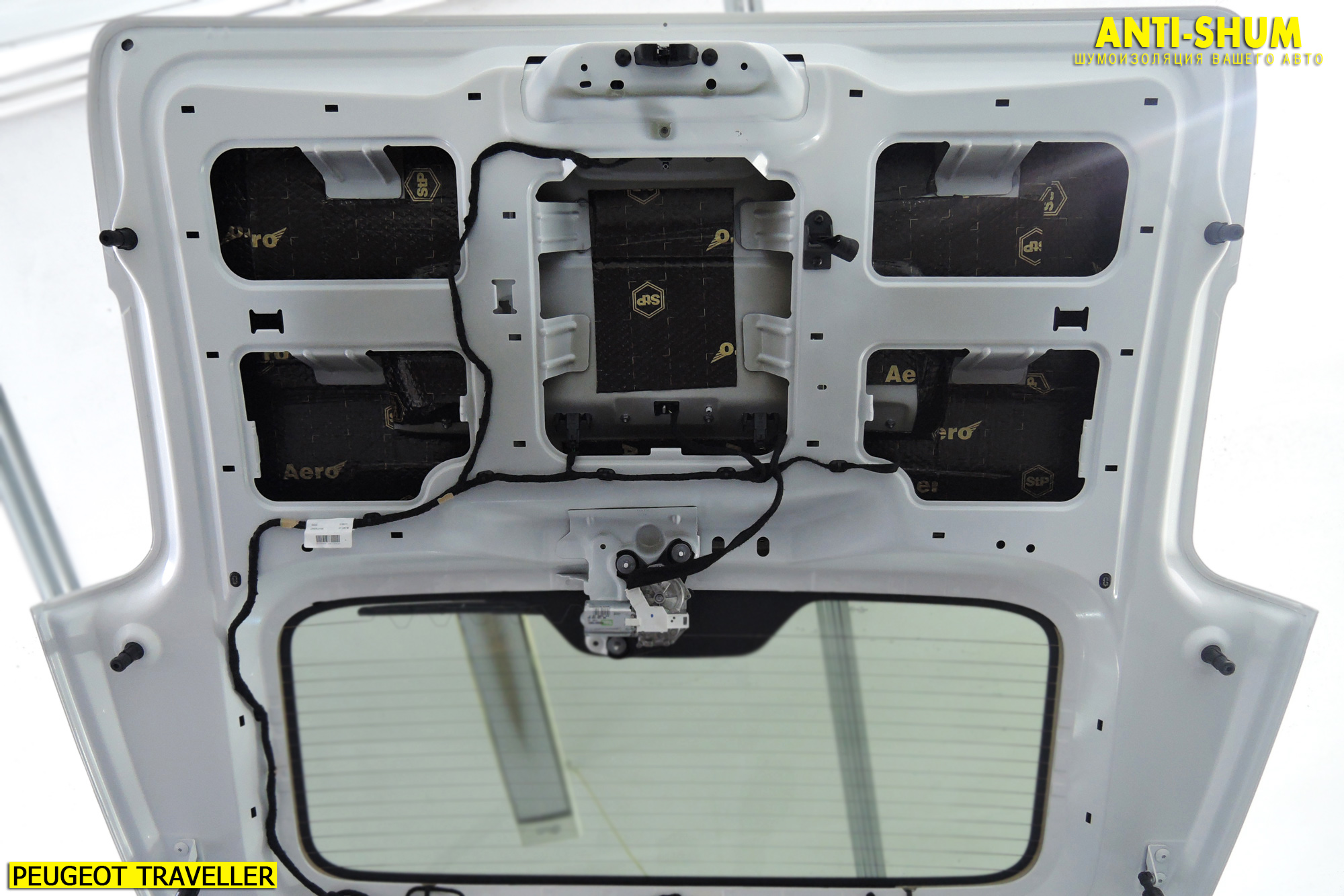 Теперь мы устанавливаем на место обшивку пятой двери и на этом работы по шумоизоляции салона Вашего Пежо Тревелер по варианту «Премиум» завершены. После завершения работ мы еще раз осматриваем салон на предмет качественной сборки. Для нас очень важно чтобы все детали отделки салона, уплотнители и органы управления находились в таком же состоянии и положении, как до начала наших работ. Мы еще раз проверяем работоспособность всех электрических цепей, отключавшихся на время проведения работ, пылесосим салон и протираем пластик. На этом шумоизоляция салона автомобиля Peugeot Traveller в студии АНТИ-ШУМ завершена!